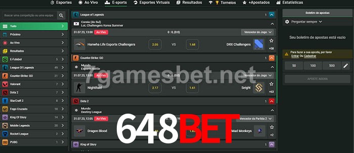 A aposta 648Bet oferece aos jogadores a experiência mais conveniente de apostas em eSports!